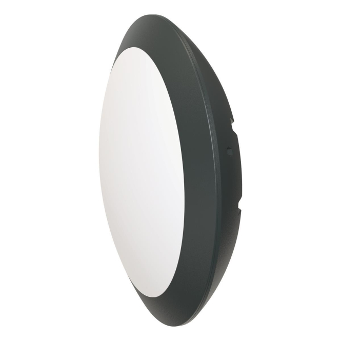 LED-Wandleuchte schlagfest IK10 Kunststoff, opal, AD 300, H 85, schlagfest inkl. 9,5/13/18,5 W/1050-2000 lm/3000/4000 K Leistung einstellbar per Dip-Schalter Die LED Anbauleuchte ist aus extrem robustem, korrosionsfreiem Kunststoff gefertigt, wodurch sie versehentlichen Beschädigungen oder bewussten Vandalismus widersteht. Bedingt durch die Schutzart kann diese in allen Räumen, auch in Feuchtraum zum Einsatz gebracht werden. Die Leuchte verfügt über die Möglichkeit einer rückwärtigen und seitlichen Kabeleinführung. Die Leuchte kann außerdem auch über eine Zentralbatterie betrieben werden, mit einer Eingangsspannung von 176-260V/DC. Zudem kann ein separat erhältliches Notstrommodul, sowie ein Dämmerungs- und Bewegungssensor nachgerüstet werden. Mit dem am Netzgerät angebrachten Schalter kann eine von zwei möglichen Farbtemperaturen eingestellt werden. Außerdem kann die Leistung über einen weiteren Dip-Schalter am Netgerät eingestellt werden. Die möglichen Farbtemperaturen und daraus – Techn.Licht/Wohnraum Aussenleuchten Techn. Aussenleuchte – EVN Wand/Deckenleu. IP66 grafit HULK 9,5-18,5W 1050-2000lm 3/4K IK10 D300mm