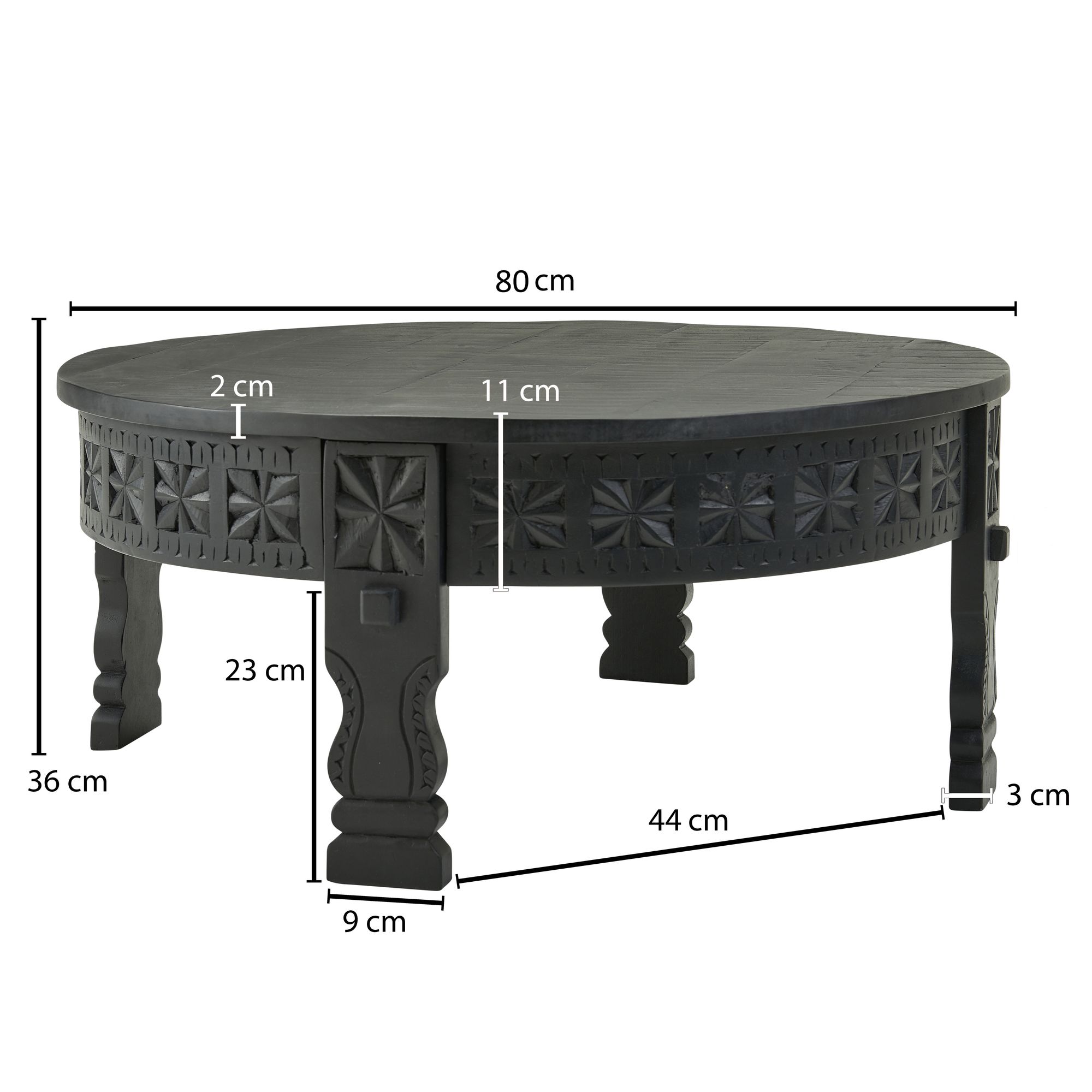 FineBuy Couchtisch Mango Massivholz rund · Handgeschnitzter Wohnzimmertisch im orientalischen Boho Design · Dunkler Massivholztisch