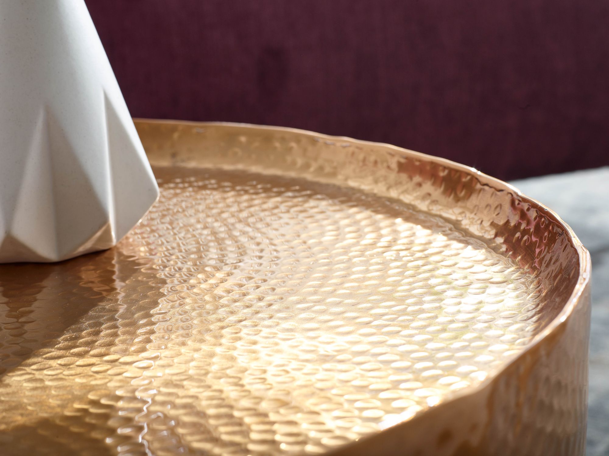 FineBuy Design Couchtisch rund 60 cm aus Metall – Handgefertigter Aluminium Wohnzimmertisch mit Hammerschlag – Orientalischer runder Alu Sofatisch
